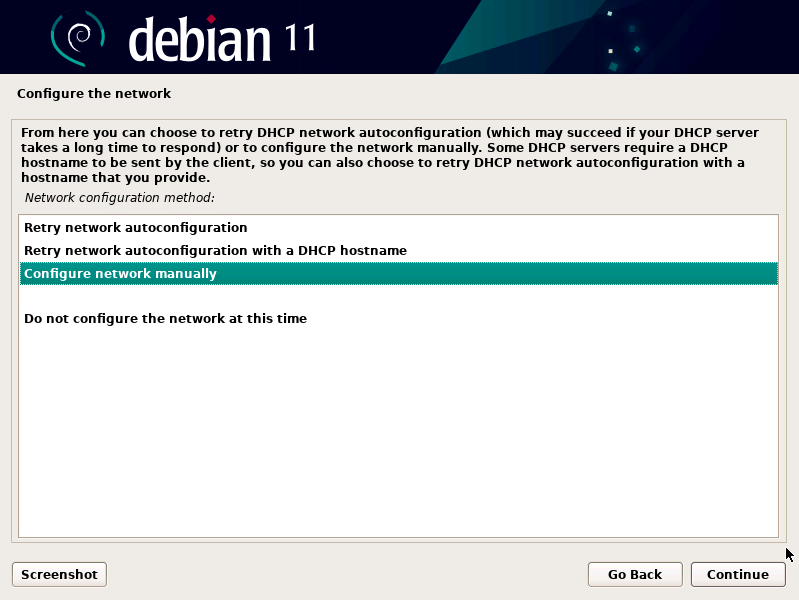 - Select “Configure Network Manually”
