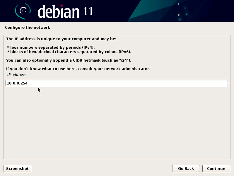 - Enter netmask
