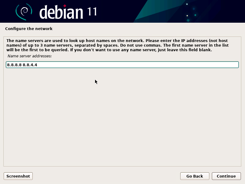 - Enter DNS servers (separated by space)