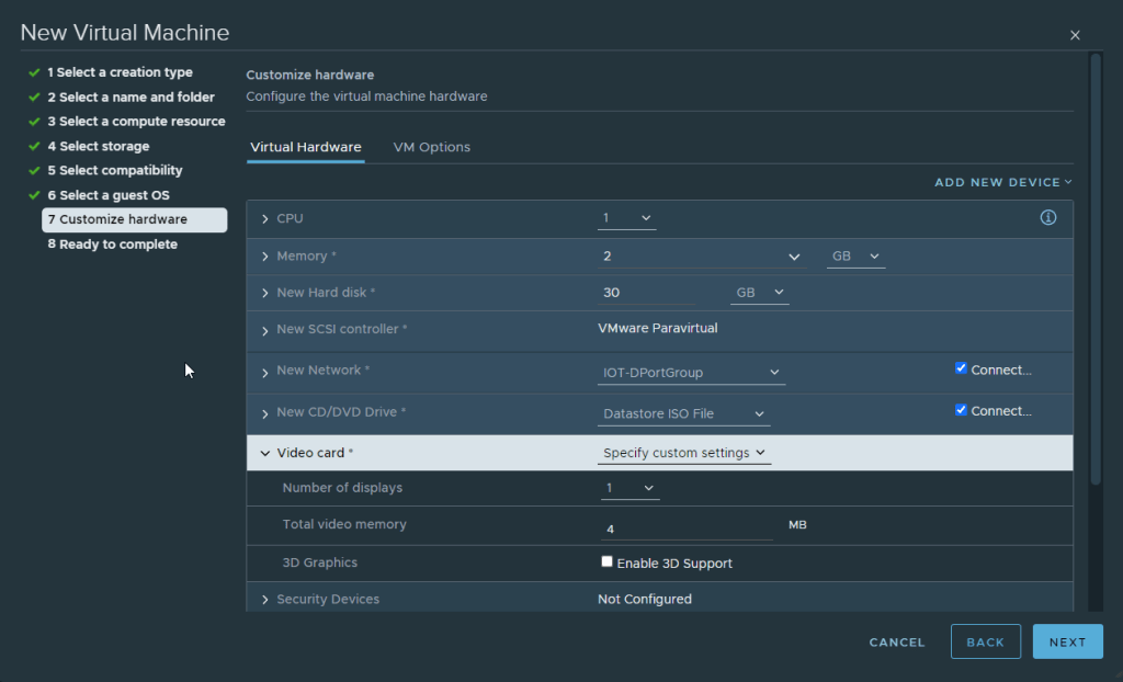 - Network: Any port group with internet connectivity (preferably DHCP enabled)